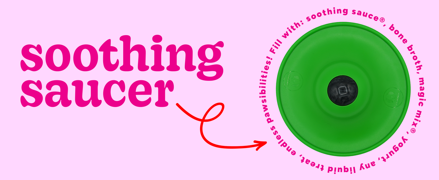 Refill The Saucer with Soothing Sauce, Bone Broth, Yogurt, Peanut Butter, Magic Mix, Spreads or your pet's favorite liquid treat! The pawsibilites are endless.